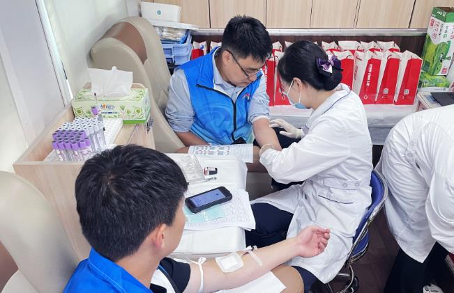 活動現(xiàn)場有條不紊。在醫(yī)護人員指導下,志愿者們有序進行登記、體檢、采血等環(huán)節(jié),順利完成獻血。
