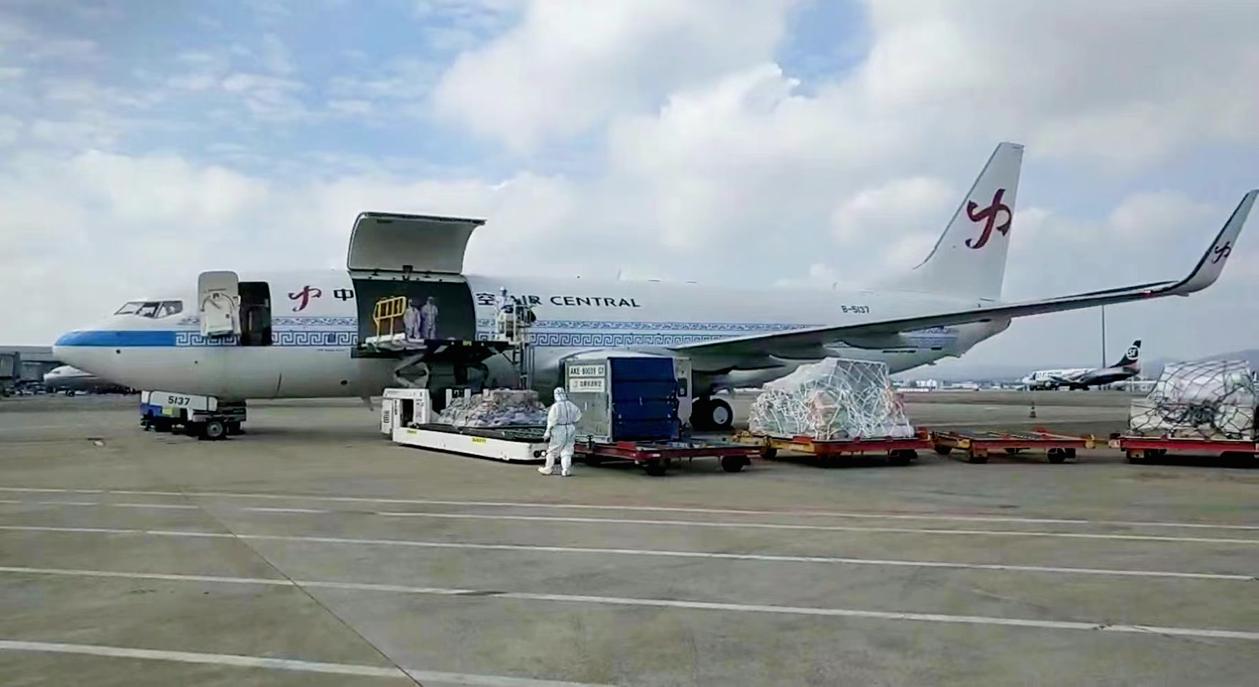 11月11日12時41分,中原龍浩航空一架滿載紡織輔料、工程配件等貨物的波音737-800全貨機從南寧吳圩國際機場順利起飛,尾翼上“中”字形Logo熠熠生輝,當(dāng)日15時許抵達(dá)越南胡志明市,標(biāo)志著中原龍浩航空又一條通往RCEP重要城市的國際貨運航線正式開通,這也是中原龍浩航空新涂裝貨機的首次亮相。