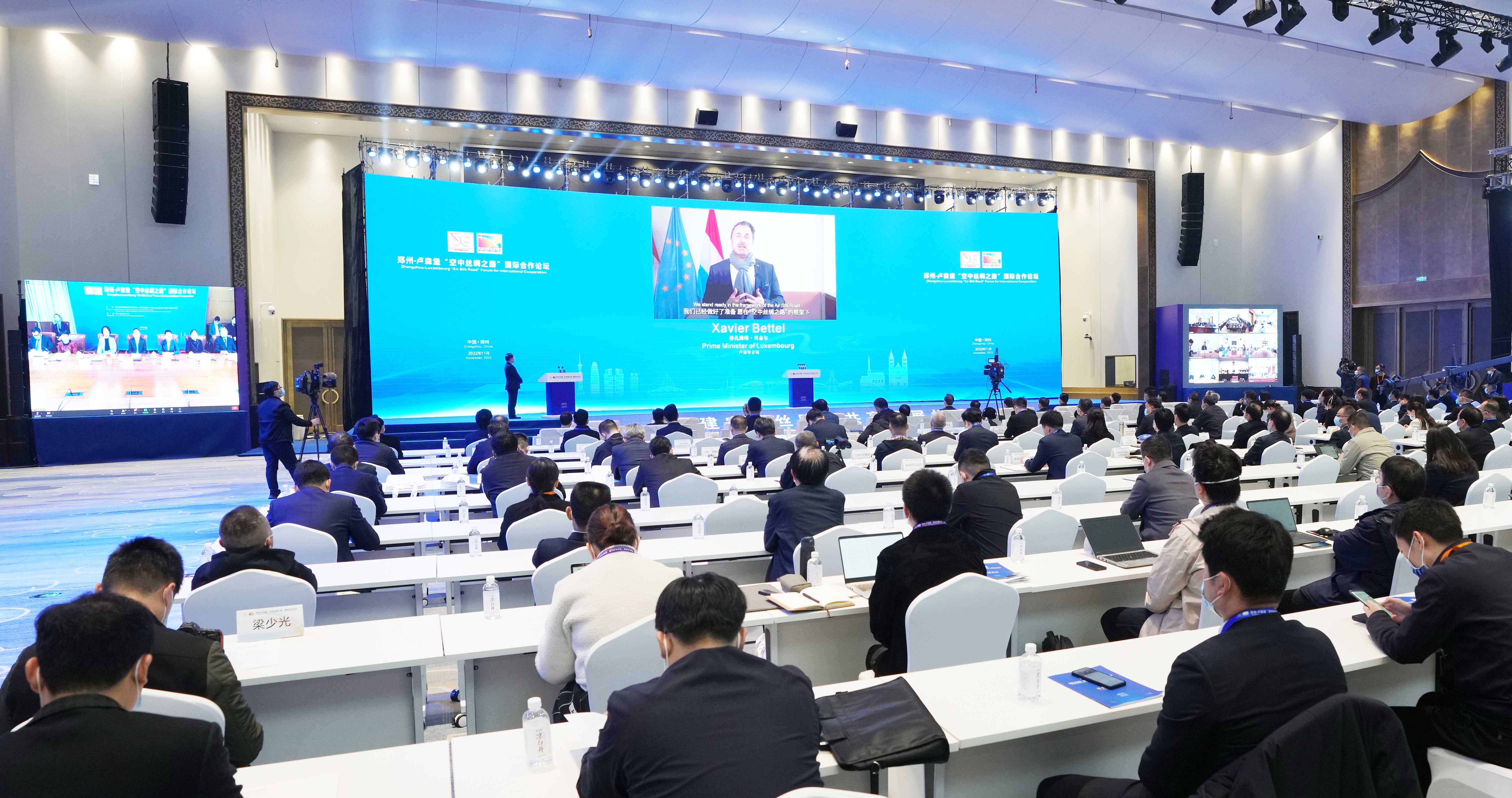 11月16日,以“做大做強(qiáng)中盧貨運(yùn)航線‘空中絲路’”為主題的鄭州-盧森堡“空中絲綢之路”國際合作論壇在鄭州開幕。中央政治局委員、國家發(fā)展改革委主任何立峰,盧森堡首相格扎維?!へ愄栆曨l致辭,盧森堡副首相兼交通和公共工程大臣弗朗索瓦·鮑施發(fā)來賀信。省委書記樓陽生致辭并宣布論壇開幕,省長王凱主持。